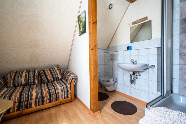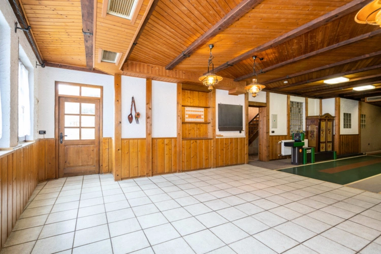 Aufteilung: Erdgeschoss: Gaststätte ca. 100 m² Nutzfläche / Kegelbahn ca. 90 m² Nutzfläche 1. Obergeschoss: 5 Zimmer, ca. 90 m² Wohnfläche 2. Obergeschoss: 5 Zimmer, ca. 90 m² Wohnfläche Dachgeschoss: 3 Zimmer, ca. 70 m² Wohnfläche